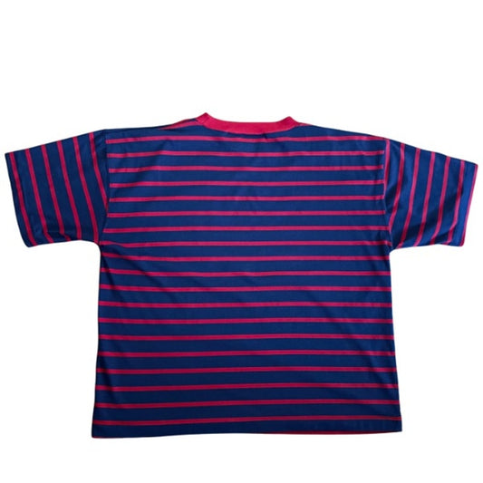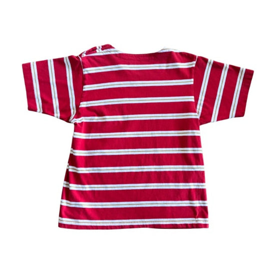Vintage Anchor Patch Red/Yellow/White Striped Short Sleeve Top (L)