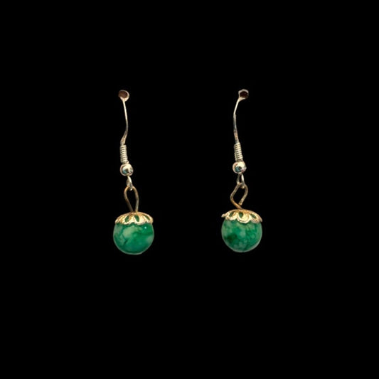 Dainty Green Marble Bead Drop Earrings | Upcycled Vintage