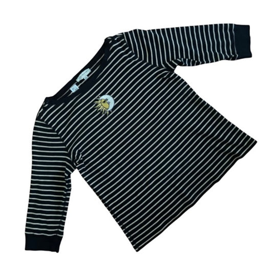 Vintage Sun and Moon Patch Black and Beige Striped 3/4 Sleeve Boat Neck Knit Top (XL)