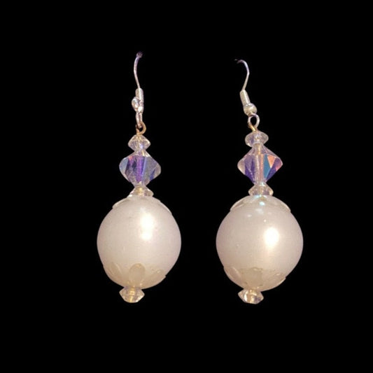 White Mock Crystal and Pearl Beaded Drop Earrings | Upcycled Vintage