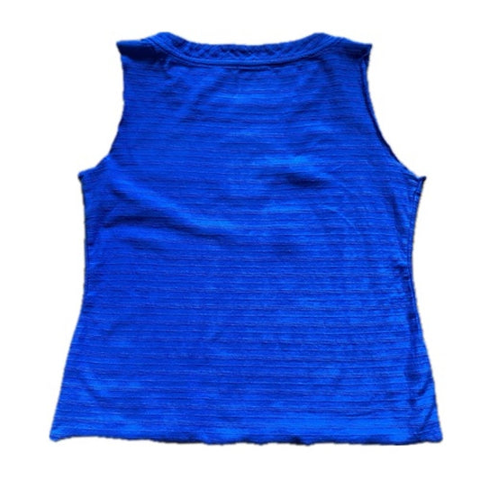 Upcycled Tropical Fish Vintage Patch Embellished Sleeveless Cobalt Blue Tank Top (S)