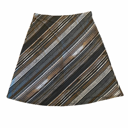 Navy, Brown, and White Diagonal Striped A-Line Skirt (M)