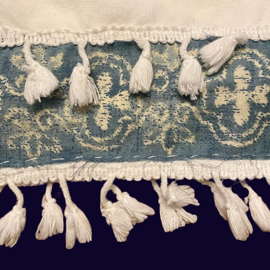 Embroidered Patchwork White/Yellow/Blue Beachside Sunset Tassel Hem Mini-Skirt (S)