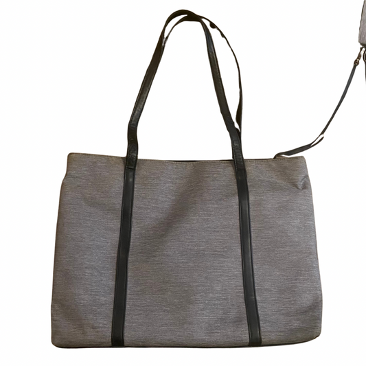 Large Grey Canvas and Black Pleather Laptop/ Work Tote Bag with Detachable Pouch