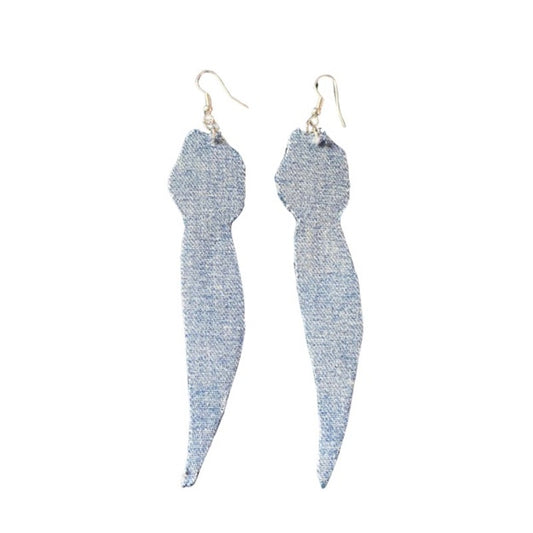 Upcycled Vintage Yellow Tulip Embroidered Patch + Denim Earrings (Upside Down)