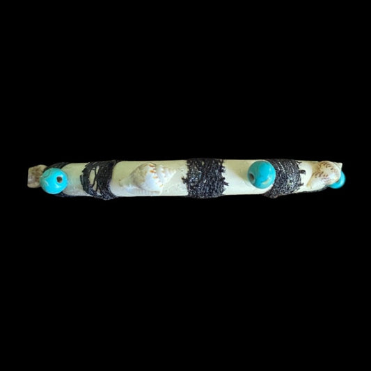 Black Lace Striped Shell & Mock Turquoise Studded Bangle