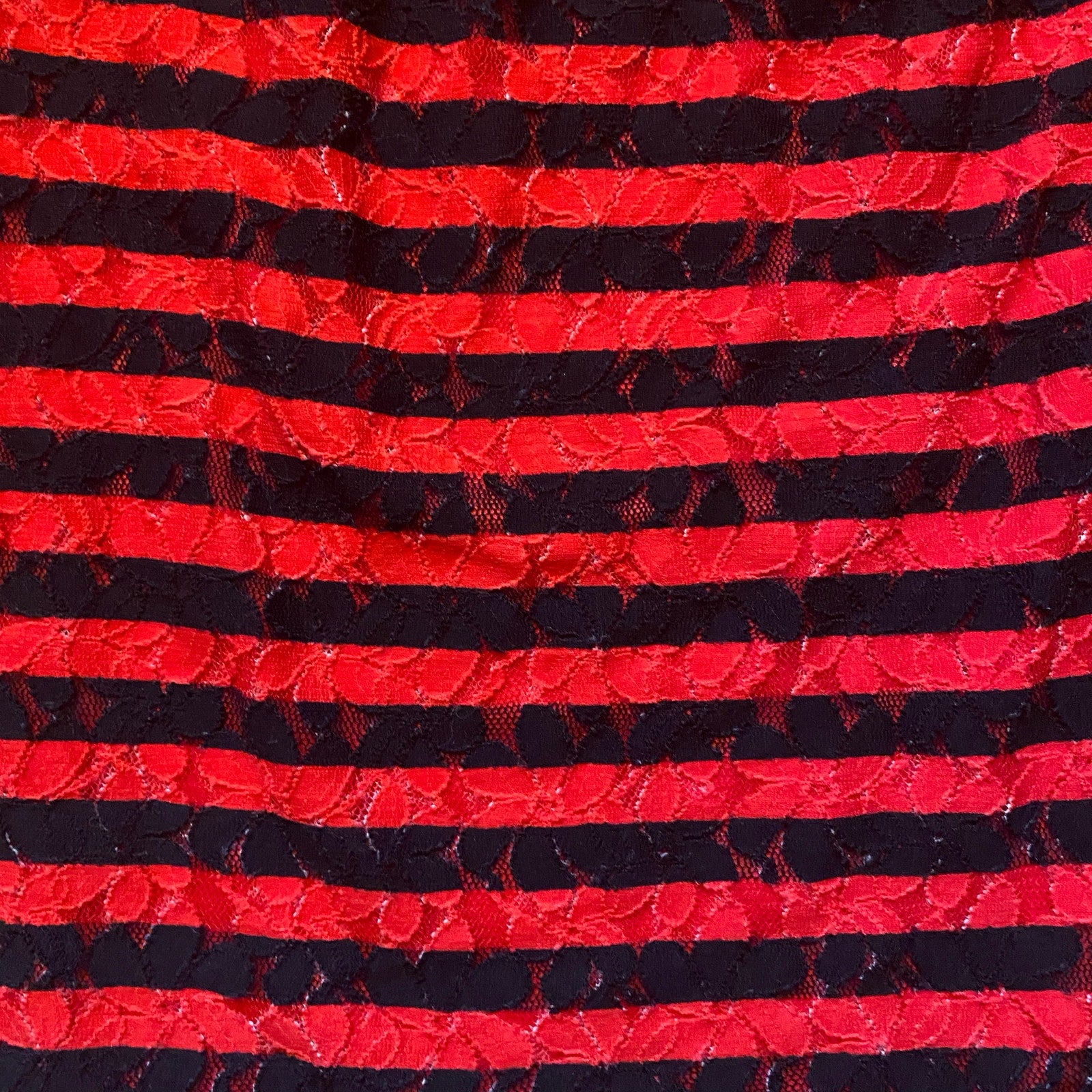 Black and Red Striped Floral Lace Off Shoulder Blouse (M)