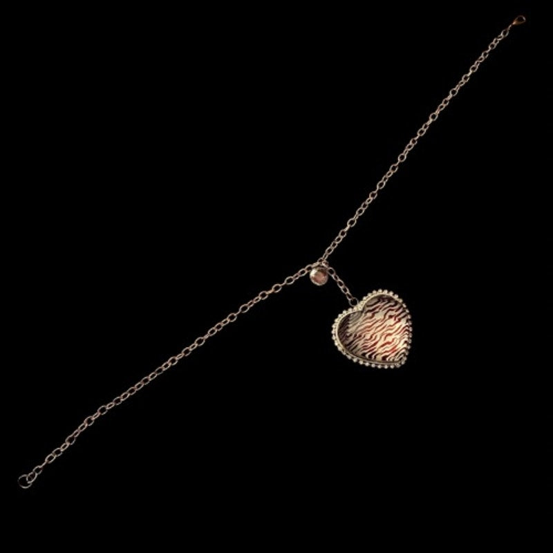 Chunky Rhinestone Studded Zebra Print Heart Silver Toned Metal Pendant Necklace