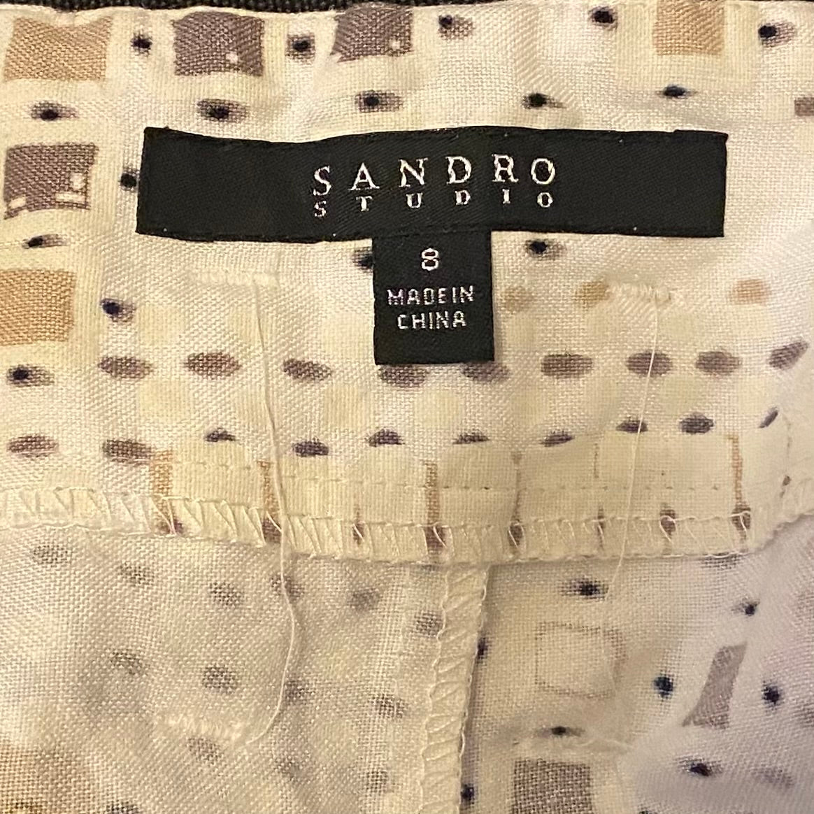 Cream/ Brown/ Tan Geometric Pattern Linen Skirt with Belt (8)