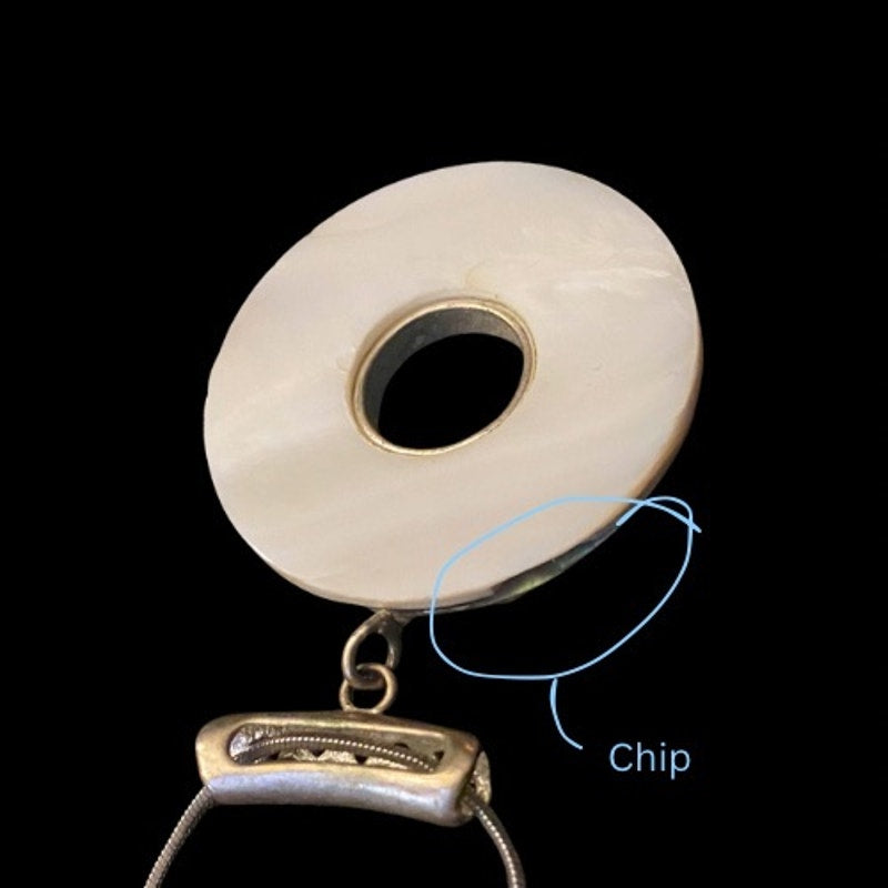 - Condition: gently loved. Unfortunately, there’s a small chip in side of shell pendant (pictured).