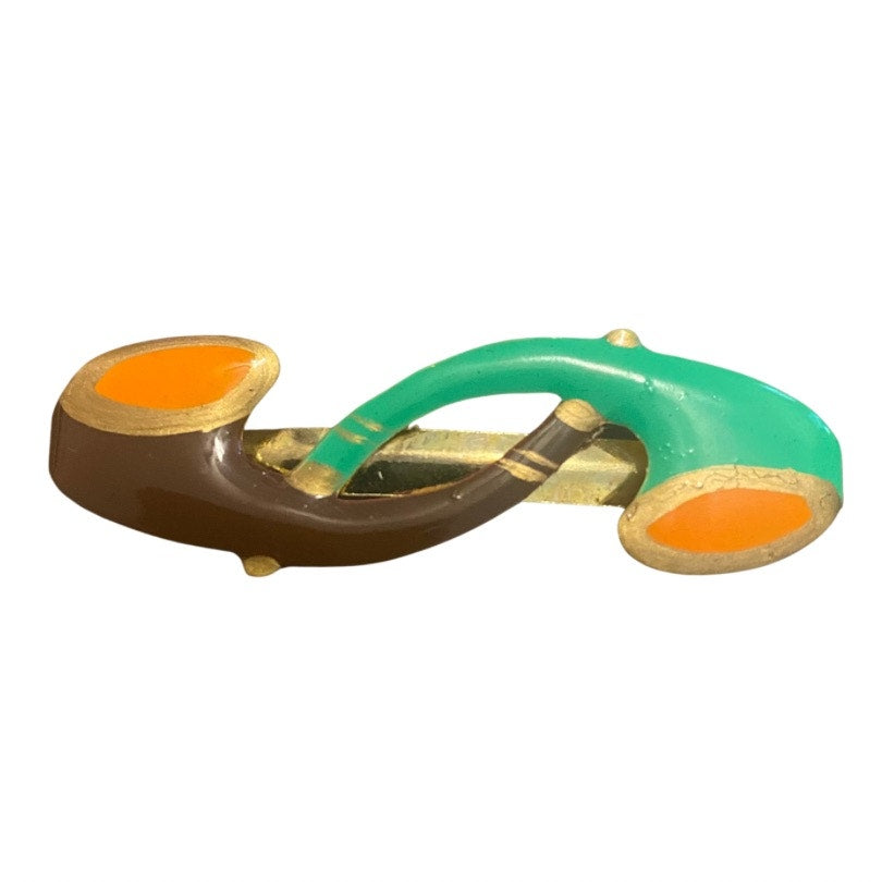 Green and Brown Vintage “Peace Pipe” Enamel Tie Clip