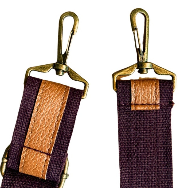 - Adjustable and removable corduroy and faux leather shoulder strap