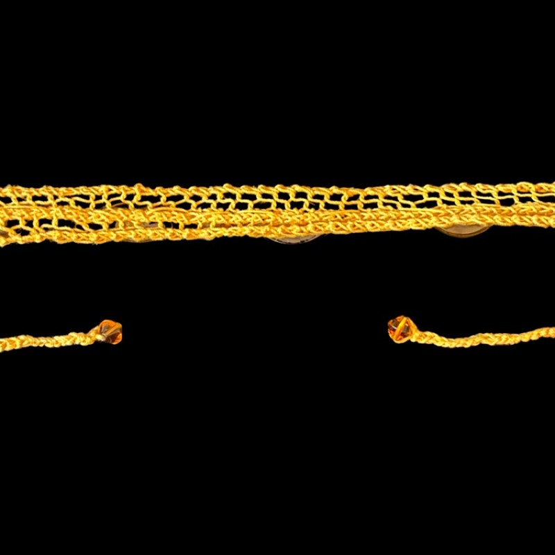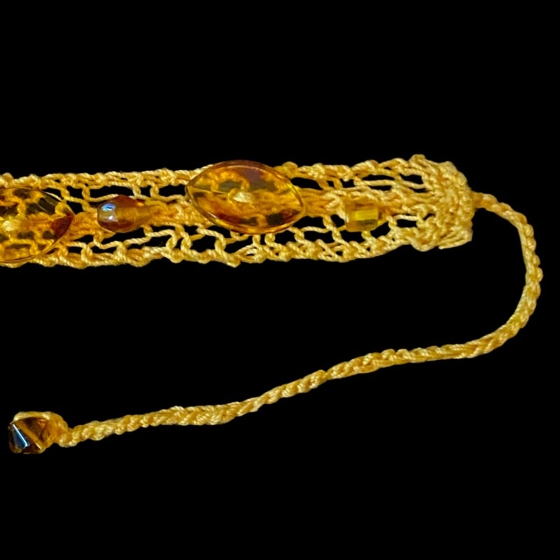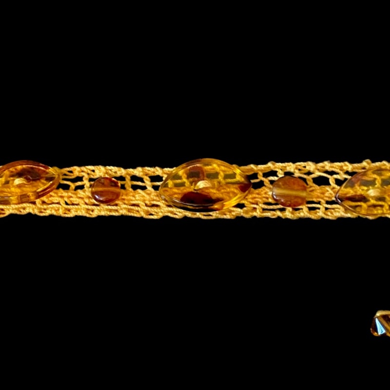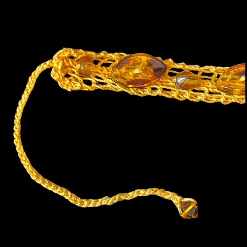 - Materials: Vintage acrylic beads and buttons, yellow cotton crochet thread