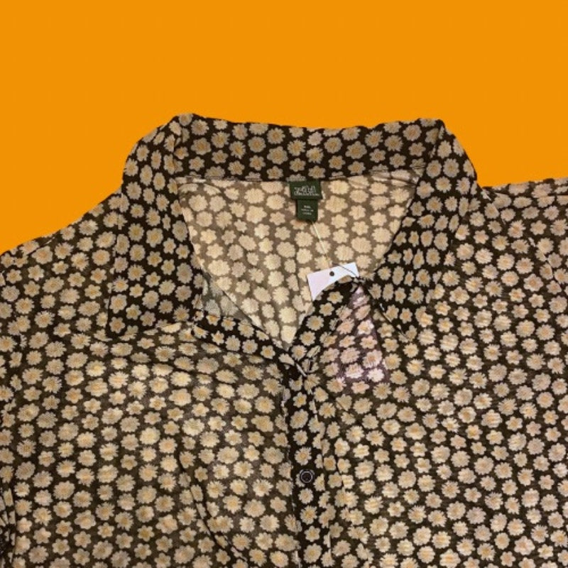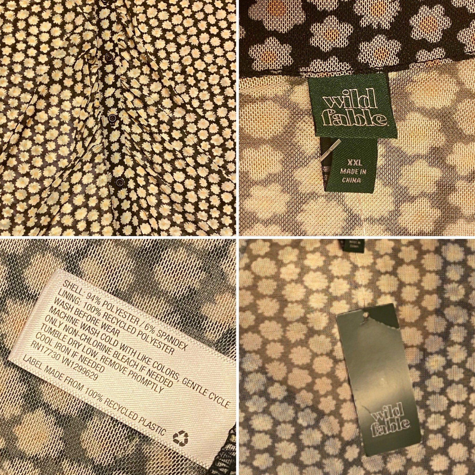 NWT Black Floral Daisy Print Longsleeve Sheer Mesh Button Down Shirt Dress Coverup (XXL)