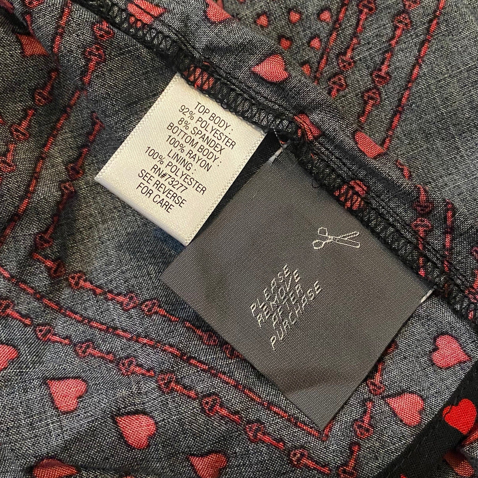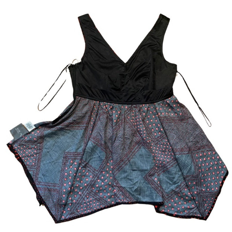 NWT Black & Red Queen of Hearts Alice in Wonderland Handkerchief Hem Tunic Top (M)