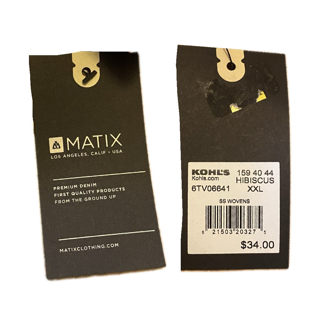 NWT Dark Blue & Orange Hibiscus Print Button Down Shirt (XXL)