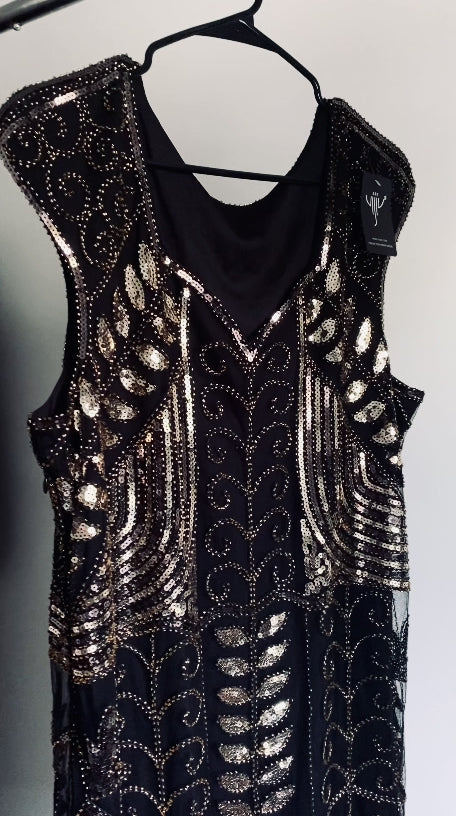 NWT Gold/Black Sequin Embroidered 1920's Style Flapper Dress (L)