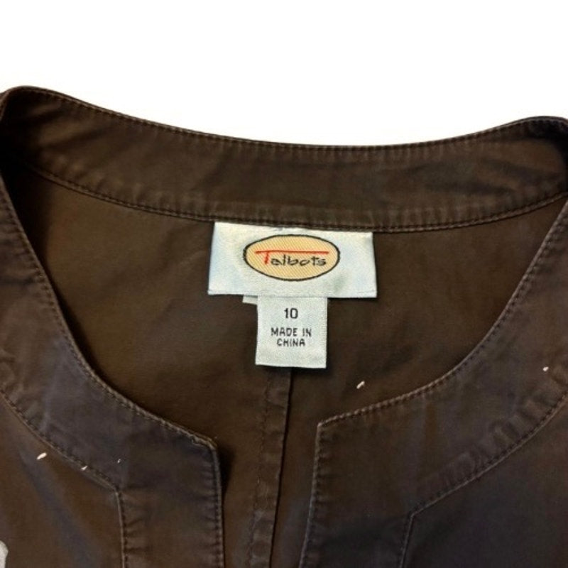 Painted Roses Upcycled Vintage Chocolate Brown Cotton 3/4 Sleeve Top (10)