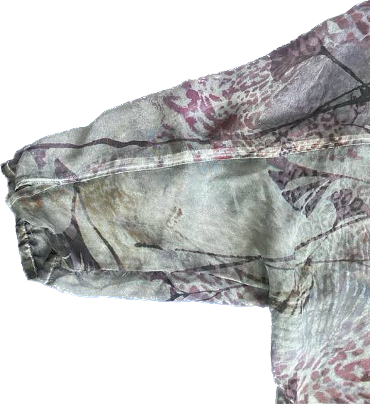 Pastel Purple Cheetah Print Ruffle Bib Blouse (Petite Large)