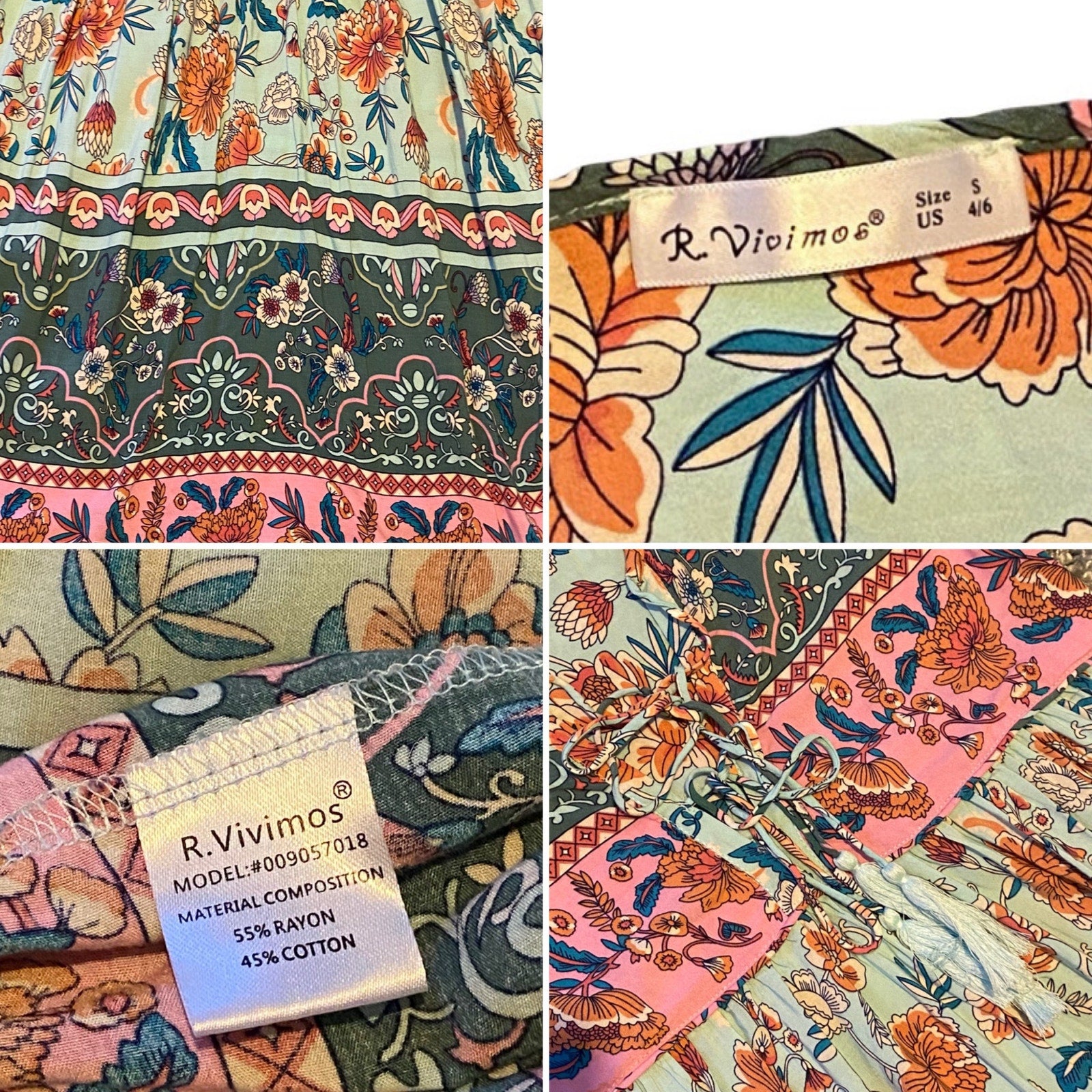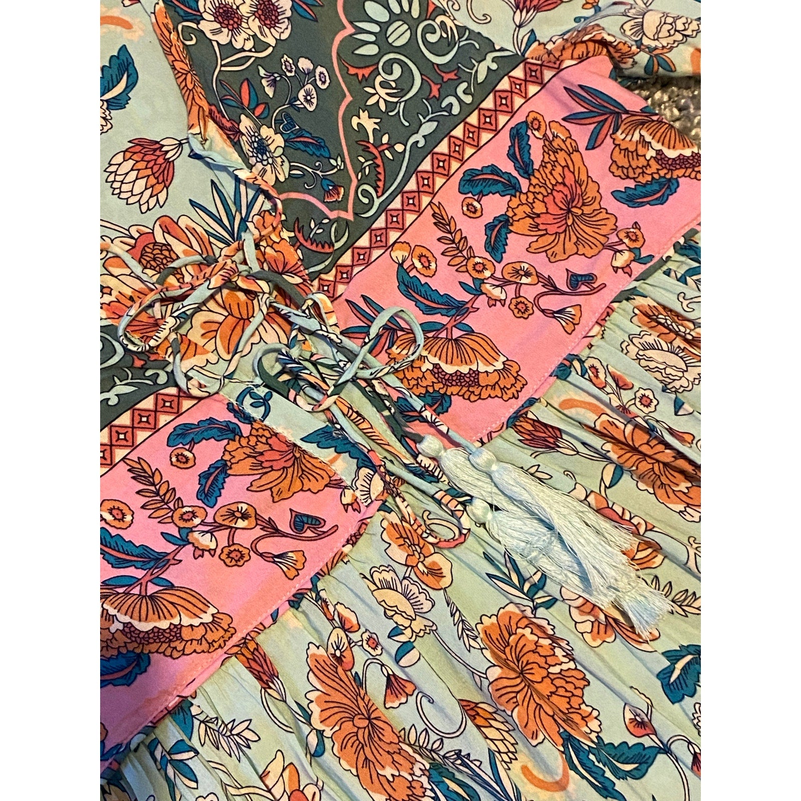 Pink & Blue Patchwork Style Striped Floral Print Long Sleeve Babydoll Dress (4/6)