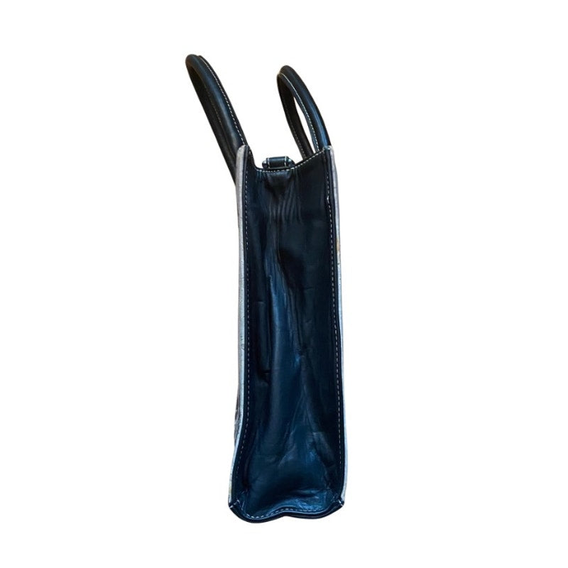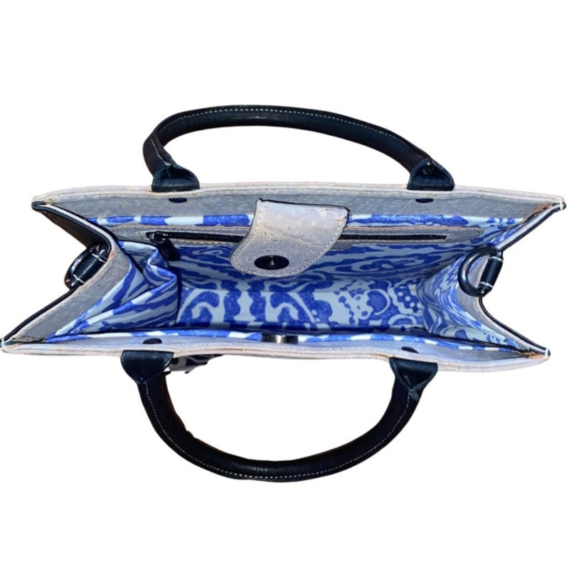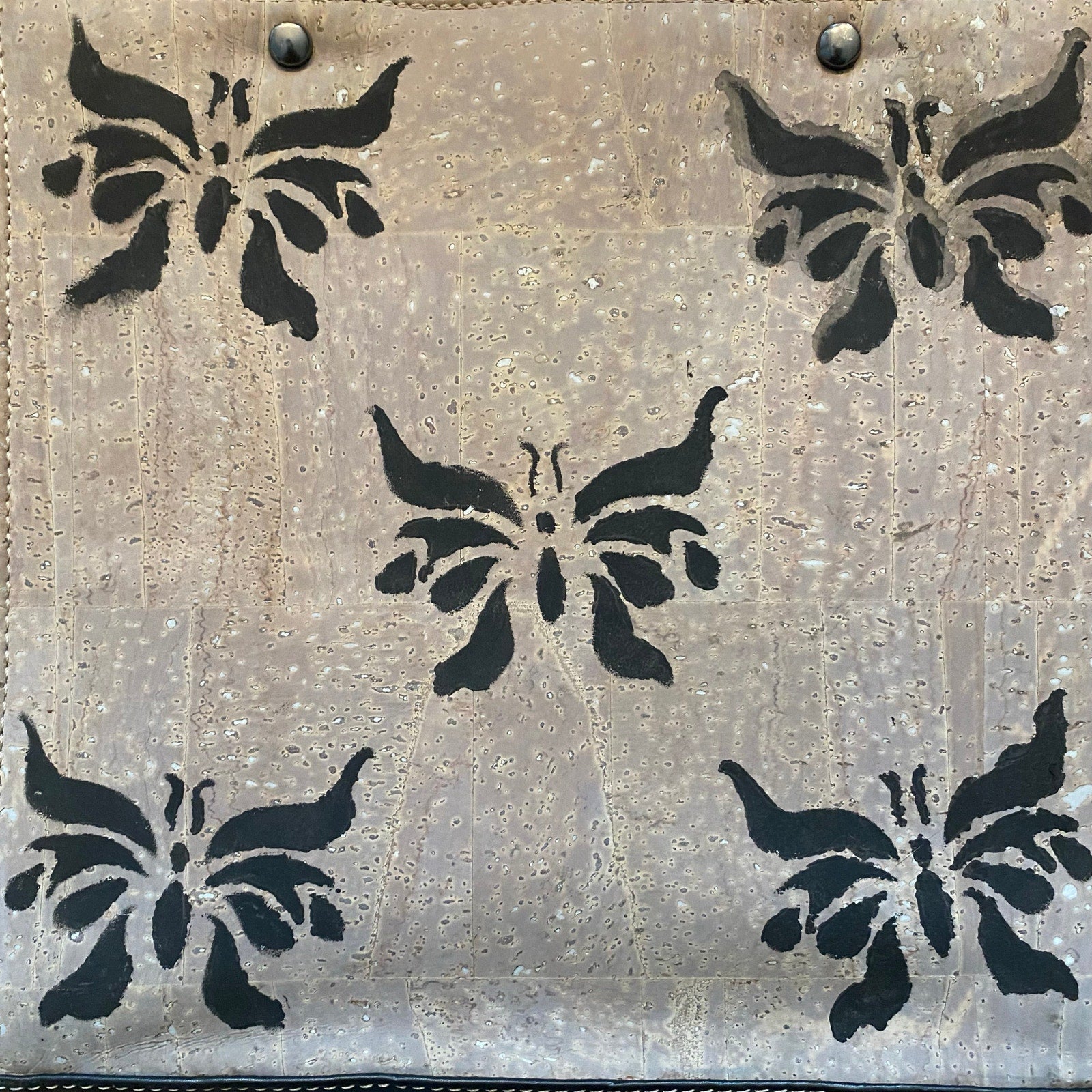 Upcycled Painted Black/Greige Butterfly Cork & Leather Handbag