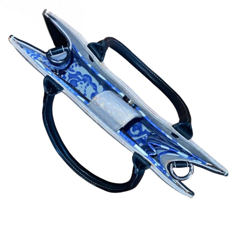 This one-of-one upcycled handbag was painted using blow-pen stencils from the late 90’s-Y2K.