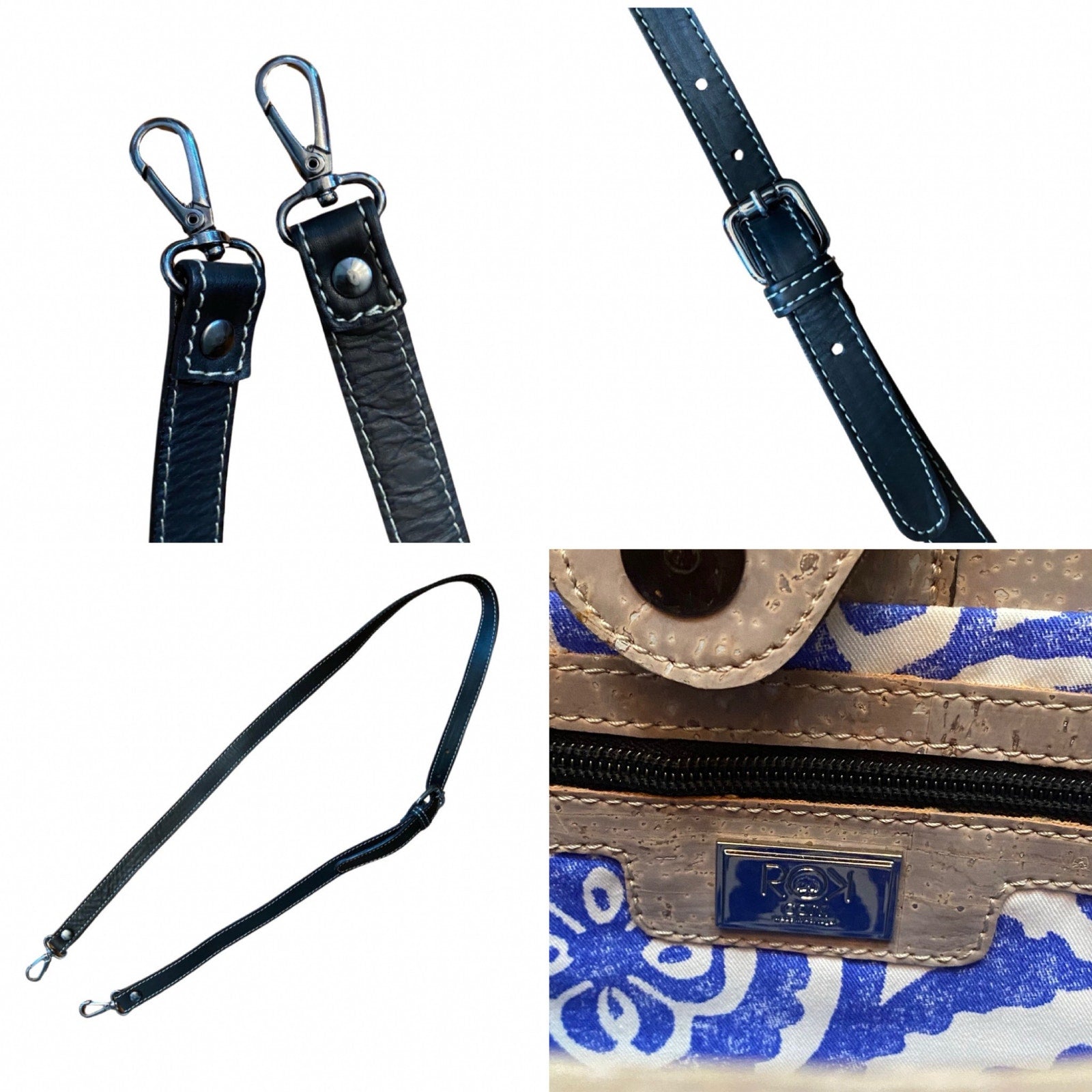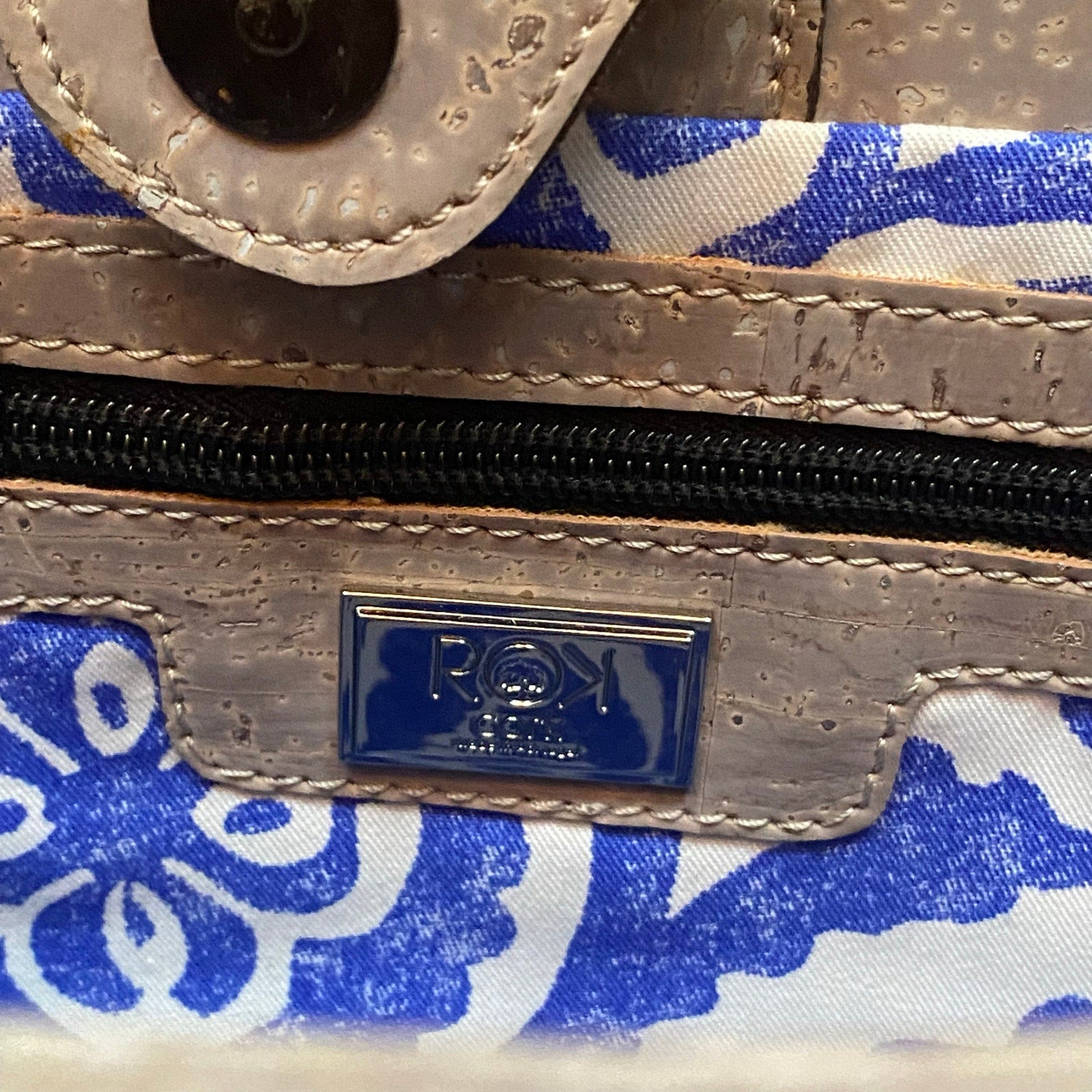 - Secondhand modern ROK natural cork top handle handbag with removable black leather crossbody strap.
