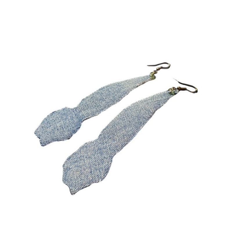 Upcycled Vintage Yellow Tulip Embroidered Patch + Denim Earrings (Upside Down)