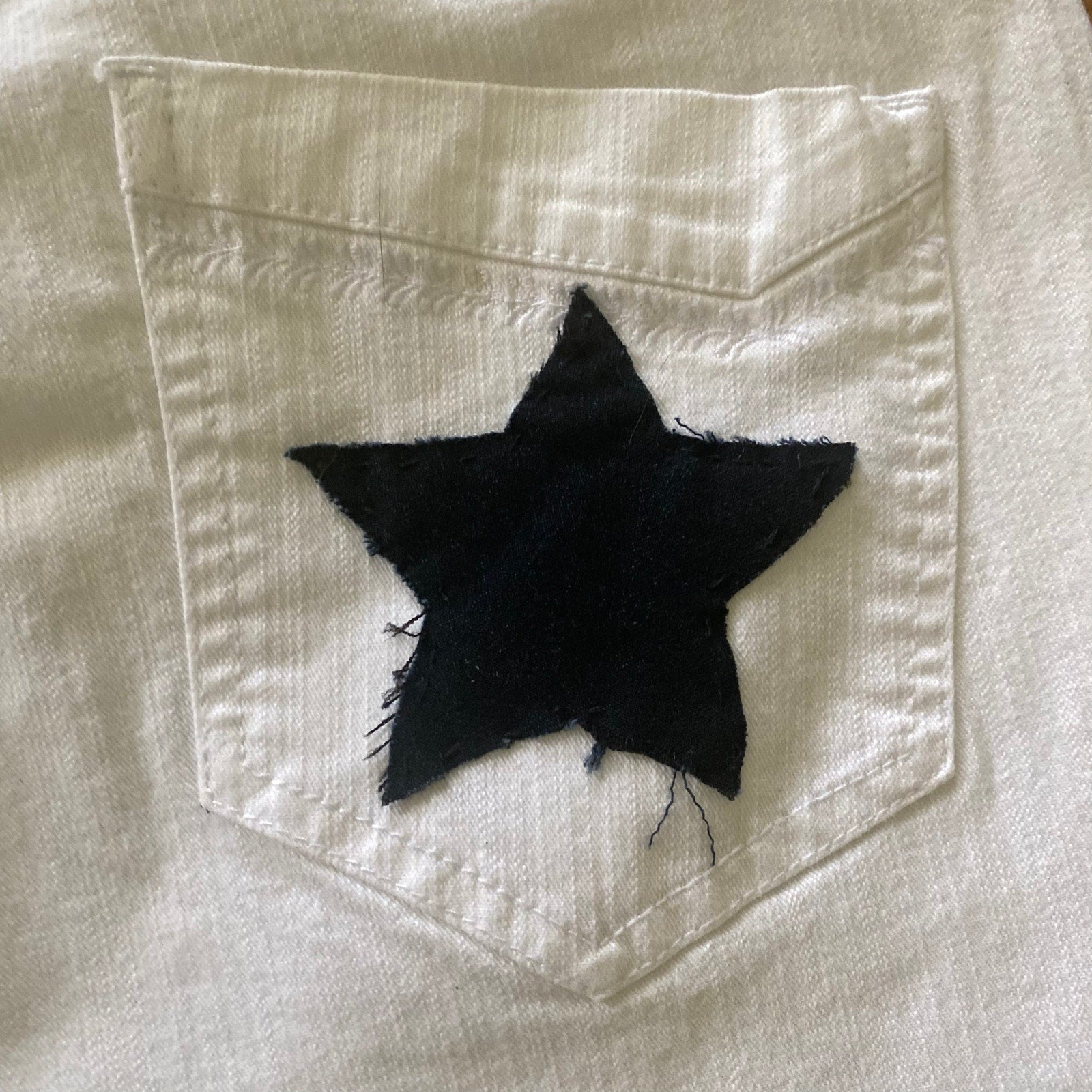 Upcycled White Denim Star Patch Fringe Hem Capris (8)