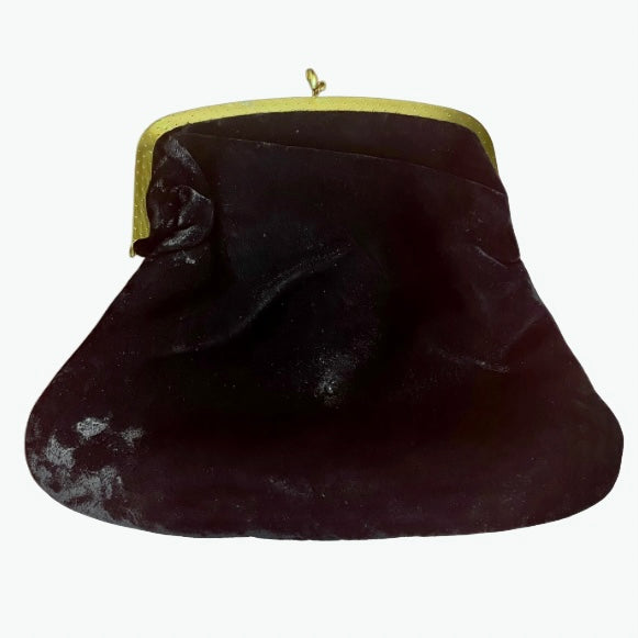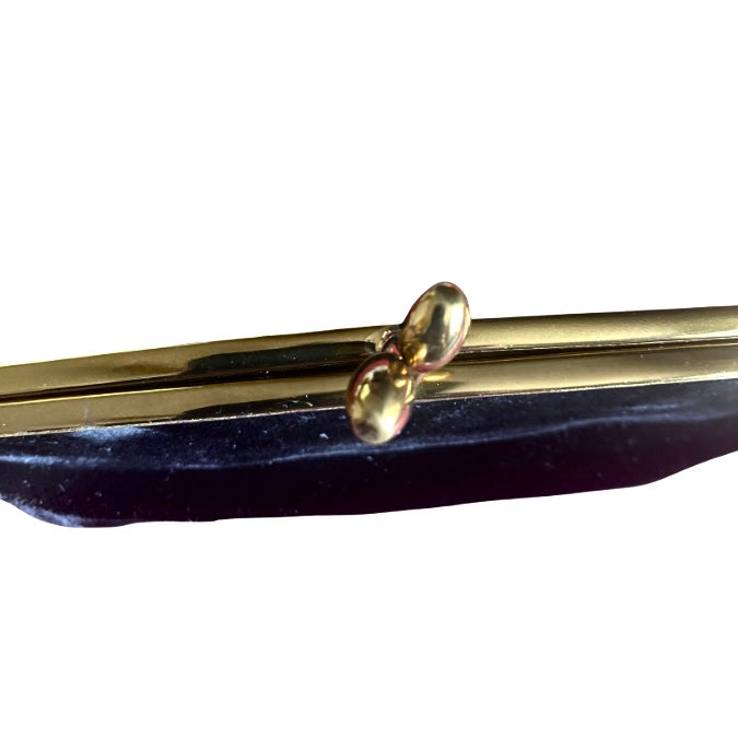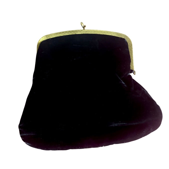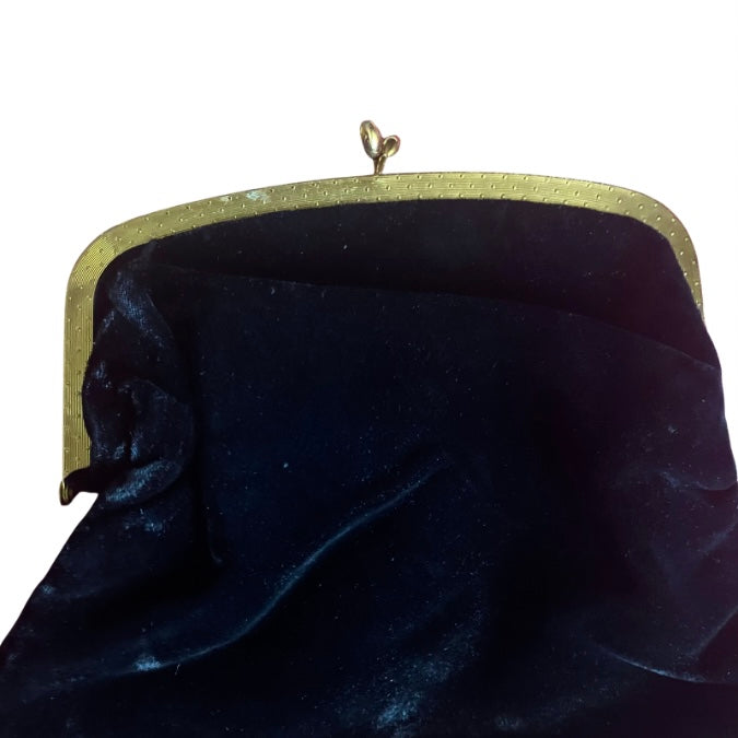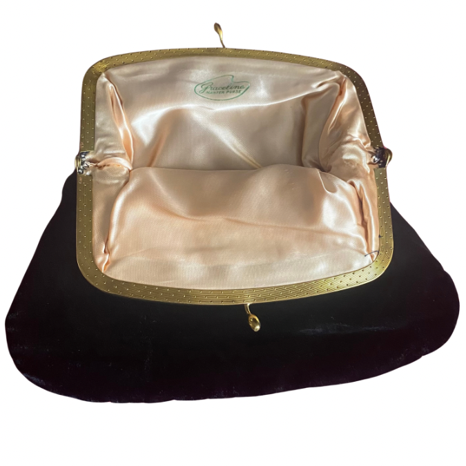 Vintage 1940’s-50’s Black Velvet/Gold Evening Bag with Pastel Pink Lining
