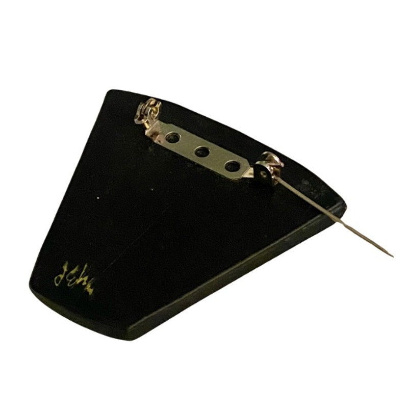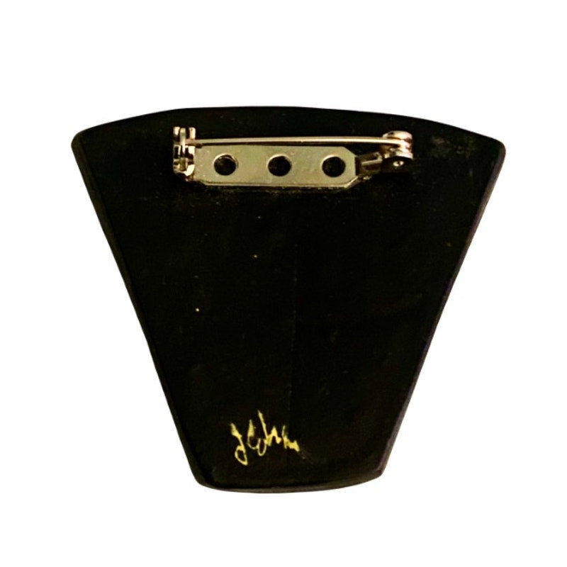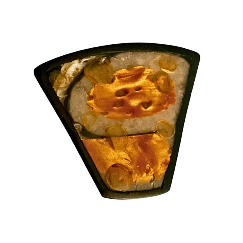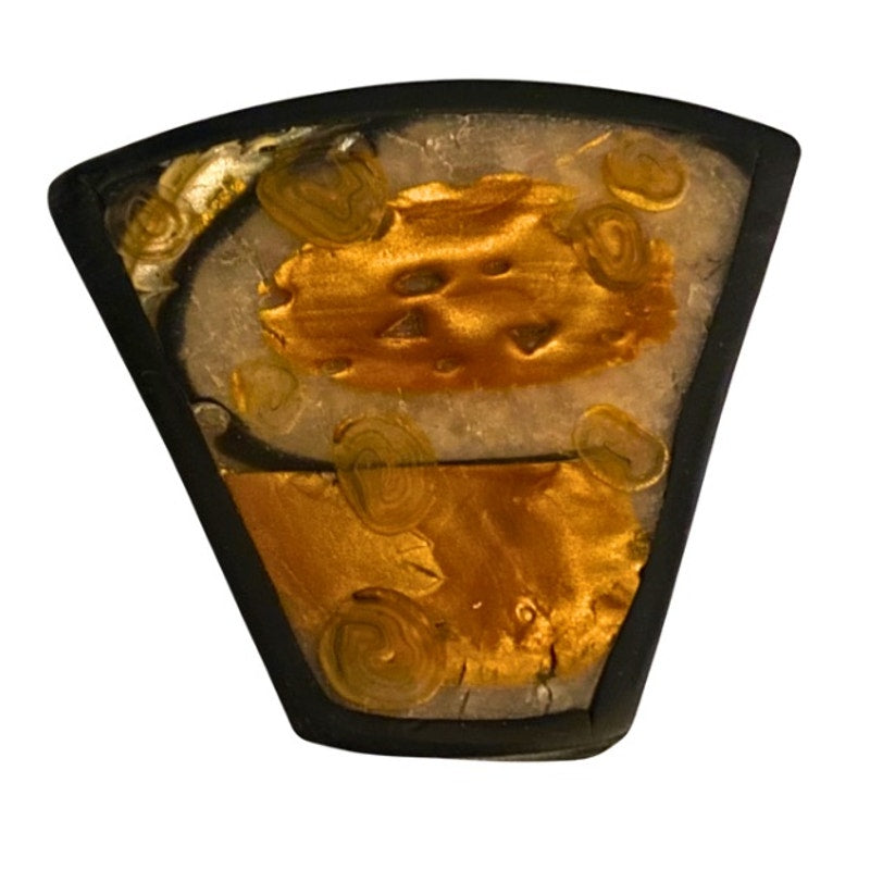 Vintage Abstract Swirled Shimmery Gold, Black, White Trapezoid Resin Pin