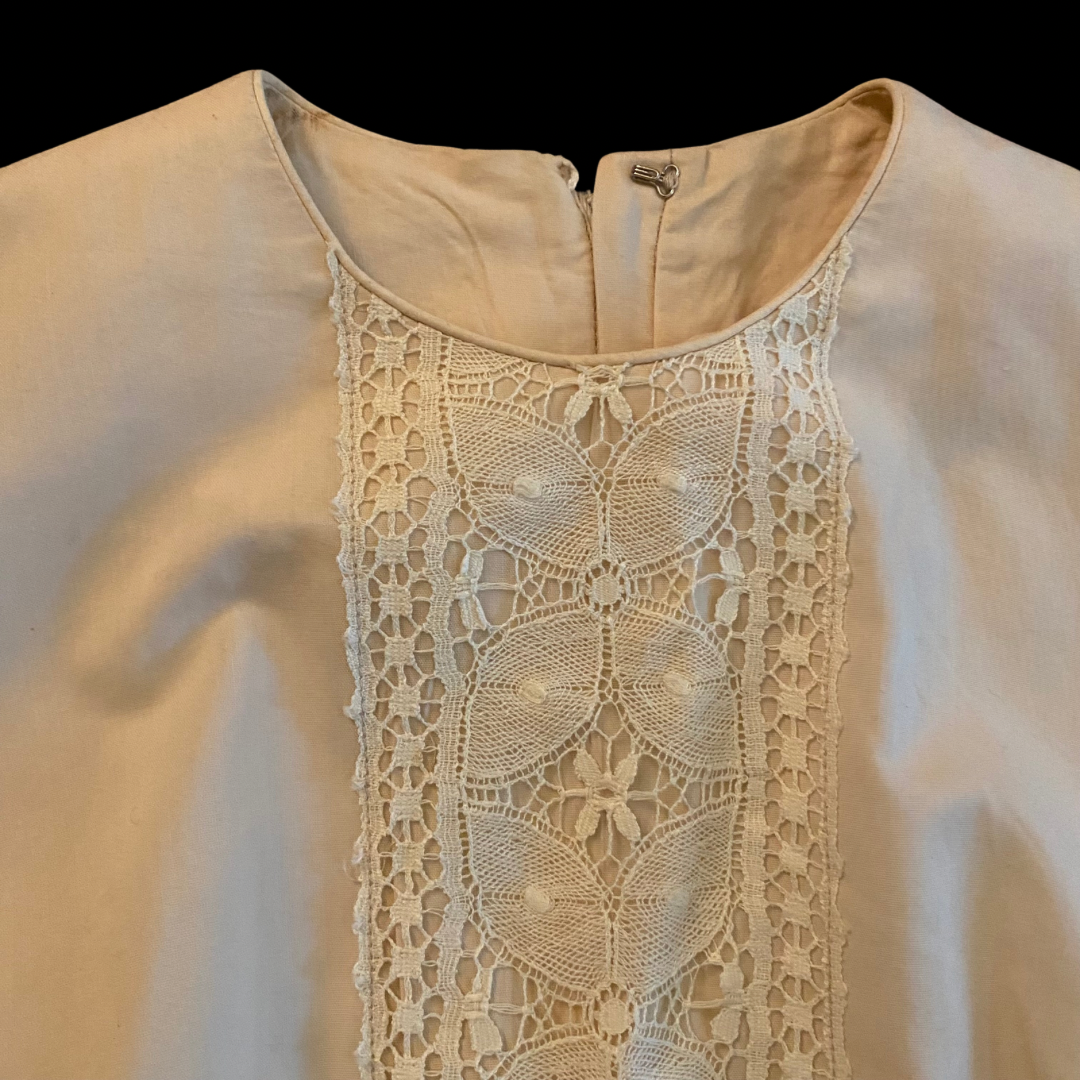Vintage Beige and White Lace Panel Wiggle Dress with Bow (S)