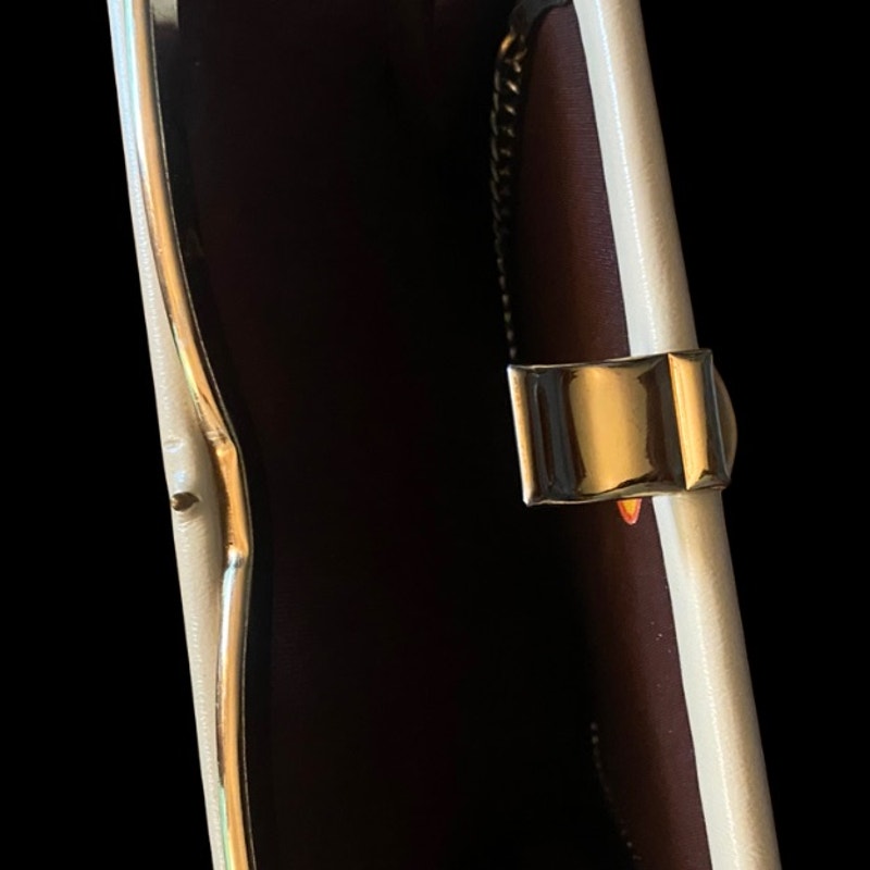 Vintage Beige Faux Leather Frame Clutch with Silver Chain Handle