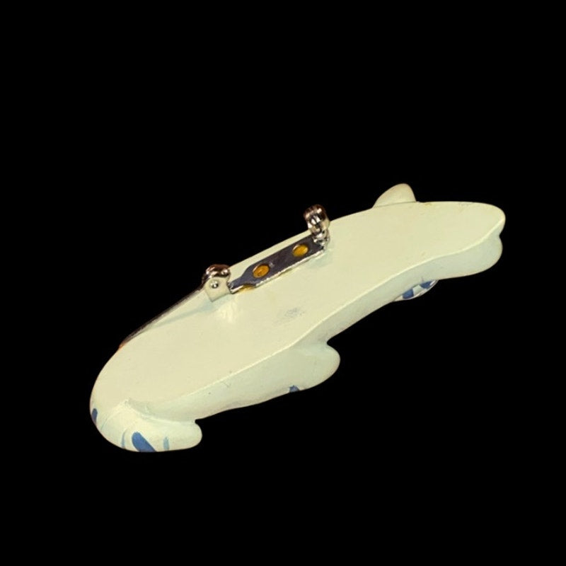 Vintage Blue and White Painted Ceramic Tiger Cat Brooch