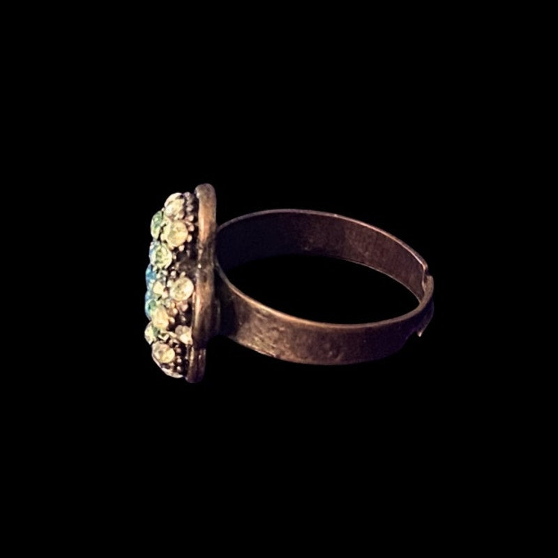 Vintage Blue & Green Rhinestone Flower Ring (7)