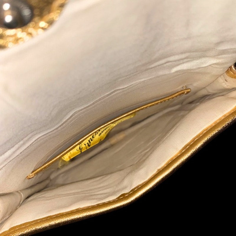 Vintage Metallic Gold Basketweave Envelope Shoulder Bag