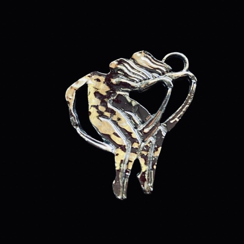 Vintage Silver Twin Crescent Moon Gemini Zodiac Pendant