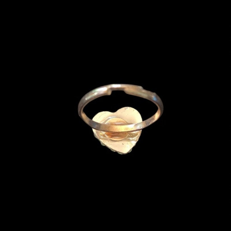 Vintage White/Rainbow Flash Pebbled Resin Heart Silver Toned Ring (5-7)