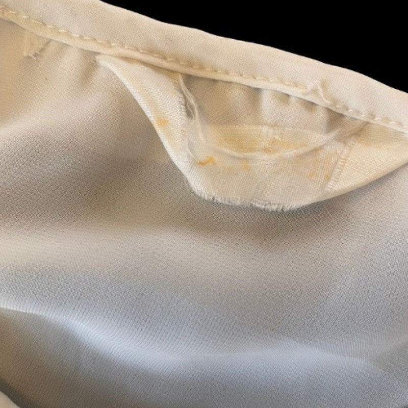Vintage White Ruffle Collar Embroidered Pink & Green Flowers Sheer Button Down Blouse (S)
