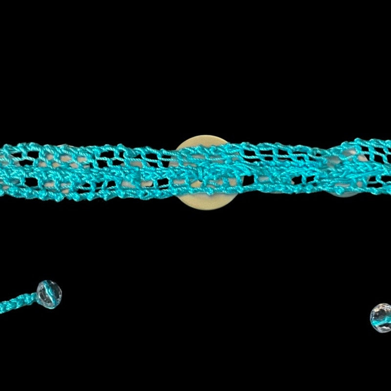 Pearlescent Button Embellished Handknit Turquoise Cotton Choker Necklace