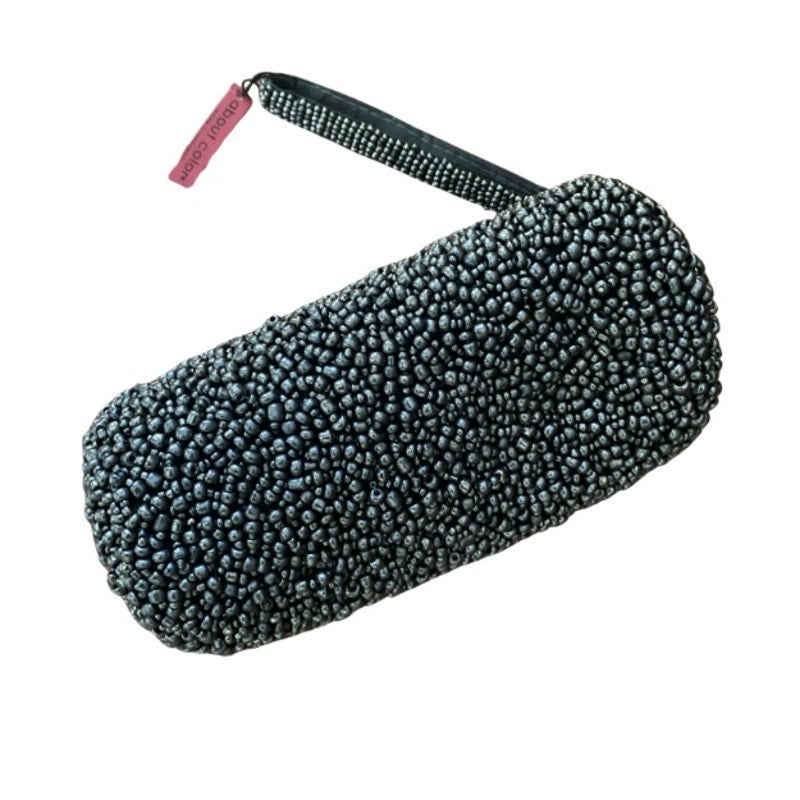 Y2K Small Metallic Pewter Pebble Beaded Wristlet